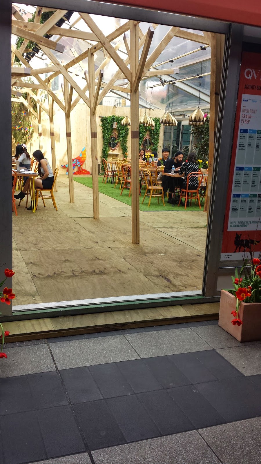 The gardens were so beautiful, there were lots of flowers starting to bloom and so many amazingly massive old trees. If you don't visit the cafe there then it'd be the perfect spot for a picnic.We got a big table in the window of the cafe to eat at. I just loved that place - from the art on the walls like above to the gorgeous big blue bookshelves with a ladder and cool industrial type stools. The cafe is run by Alla Wolf-Tasker, the very same who owns the Lake House in Daylesford. It has much more of a casual vibe with seating outside in the sun. The cafe serves up simple seasonal food, sourced from the local area.
